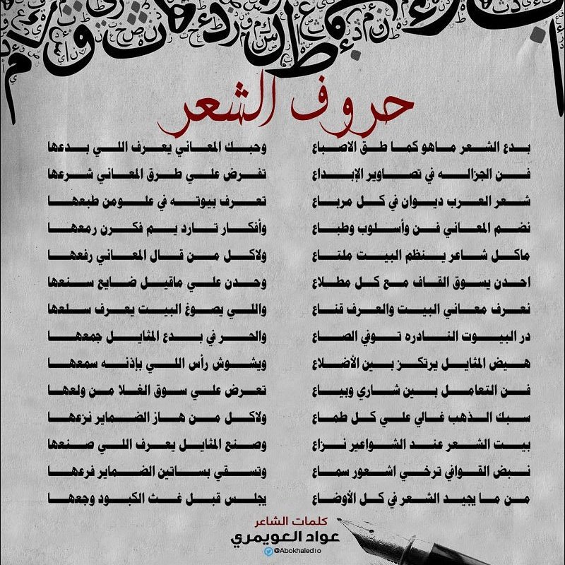 الشعر والأدب “حروف الشعر ” للشاعر عواد عبيدالله العويمري 4 أكتوبر، 2024 24 شارك علىفيس بوك تويترواتساب إقرأ أيضا !ணೋ Ѿ҉ਿـ‗φ أهداء إلى الدكتورعبدالله سعد φ‗ـੀ҉Ѿ ೋண قصيدة شاعر المحاورة / نواف ثاري العويمري الشاعر ثاري صالح معينان “راسي رفيع وﻻرتخى يم ماطاي”
